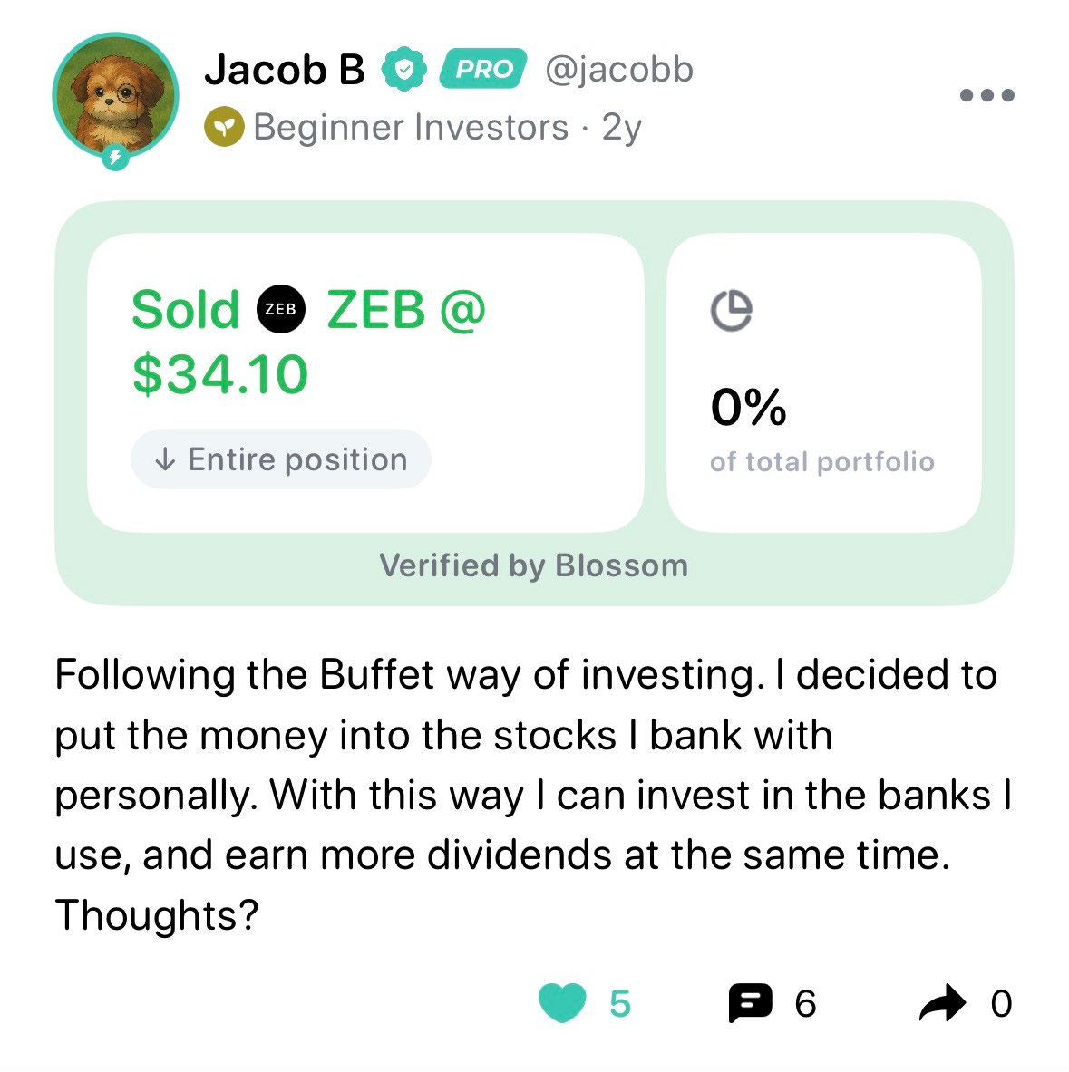 I read, I watch, I listen, and I continue to implement and improve what I know in-real-time by posting content on this newsletter and Blossom, while sharing my personal portfolio and all the decisions I make. Doing so has let me improve my wisdom vastly more than the average person could have within just a 4-year timeframe since watching that first Graham Stephan video, and only 2 years since joining the Blossom platform. I’m very grateful to have had that opportunity.