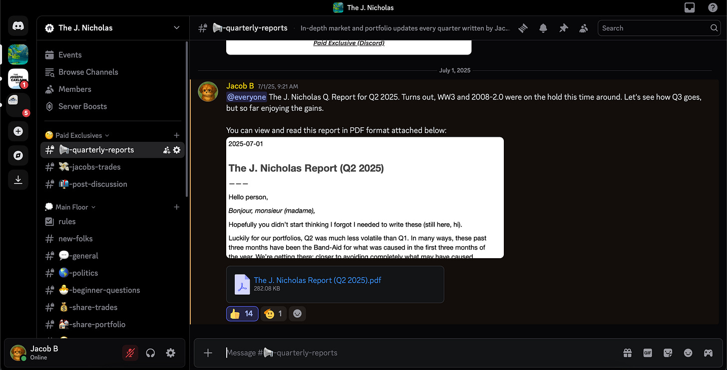 Access to The J. Nicholas Discord server, where you can chat with like-minded investors and gain exclusive insights and resources: