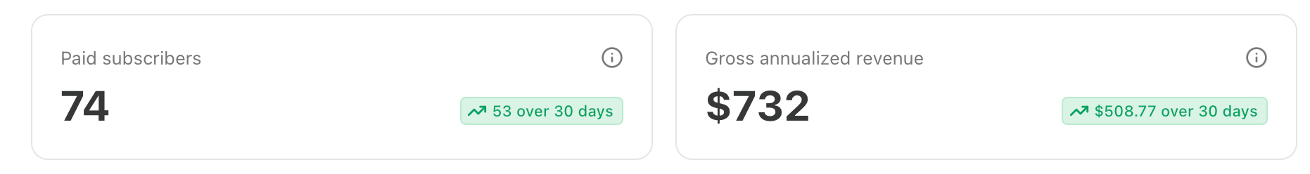 For transparency again, my ultimate goal here is to reach CA$50,000 per year in annual revenue. There are no costs to run this newsletter other than the 10% fee Substack takes for memberships, so most of this would be profit. I currently have little income (living mostly off my savings), and this newsletter has my full-time attention. Making that income goal annually, post-taxes, would net me around $38,000. Assuming my 80% save rate stays the same, and assuming this income is paid from a corporation via dividends to avoid CPP contributions, I’d be able to save and invest (according to my GARP strategy) $30,400 every year.